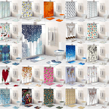 Оптовая продажа по специальной цене, Элегантная Душевая занавеска и коврик из полиэстера с 3d принтом для ванной комнаты
